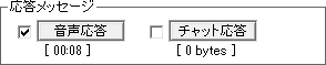 [応答メッセージの設定] 留守番応答に使用する応答メッセージの設定を行うことができます。 『音声応答』、『チャット応答』を選択し、新しい音声ファイル(WAV形式)、チャットメッセージを登録してください。複数選択することも可能です。 ビーブ音を応答メッセージの後に入れたい場合は、『ビープ音』をチェックしてください。  *旧バージョンの『ビデオ応答』、『静止画応答』はSkype APIの機能制限により廃止となりました。 [留守番中のメッセージ記録形式] 留守番中にかかってきた通話を記録する形式を指定できます。
